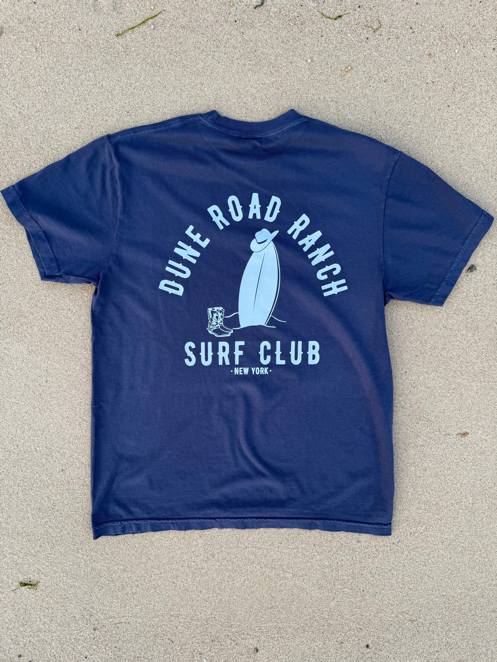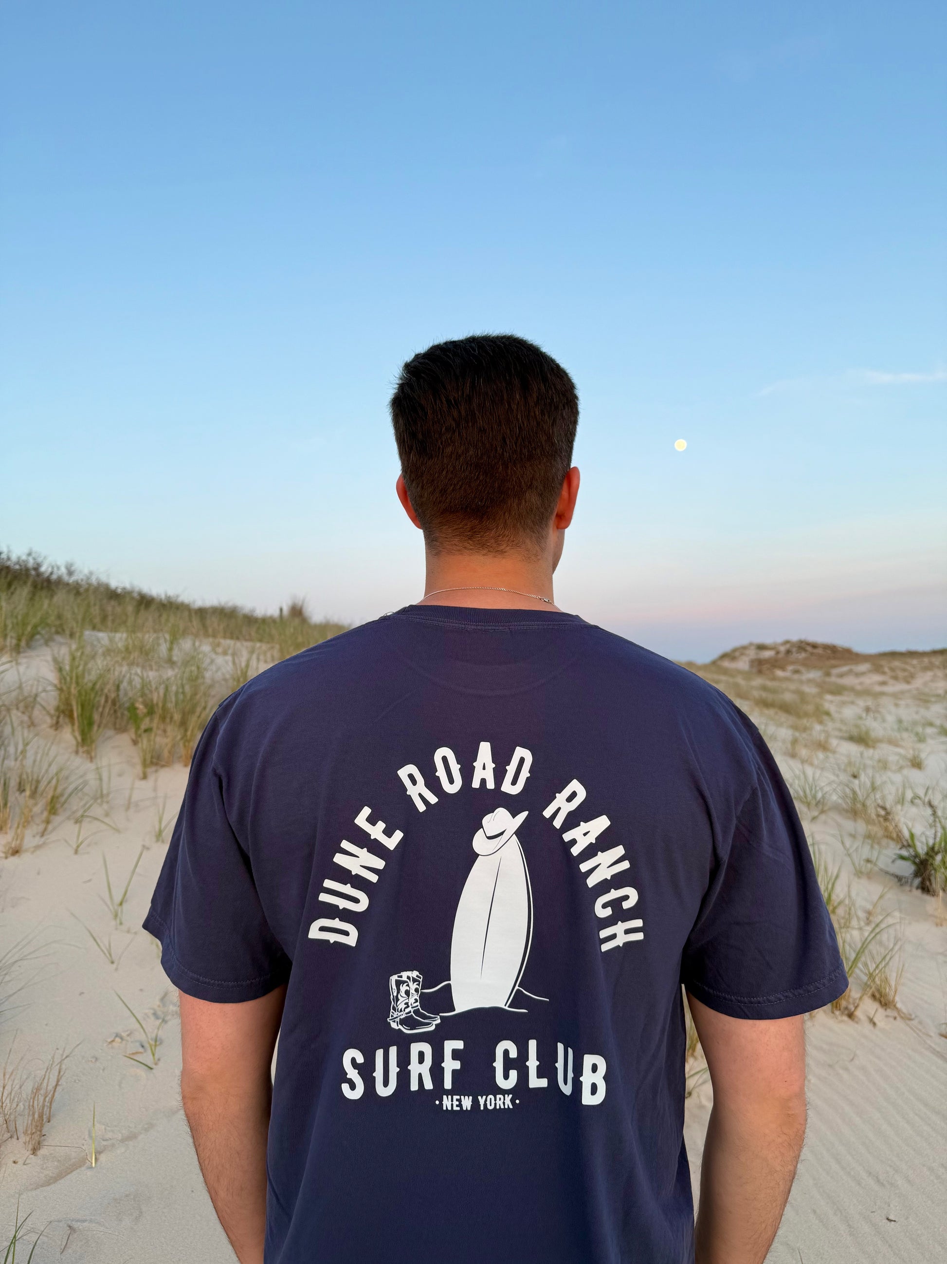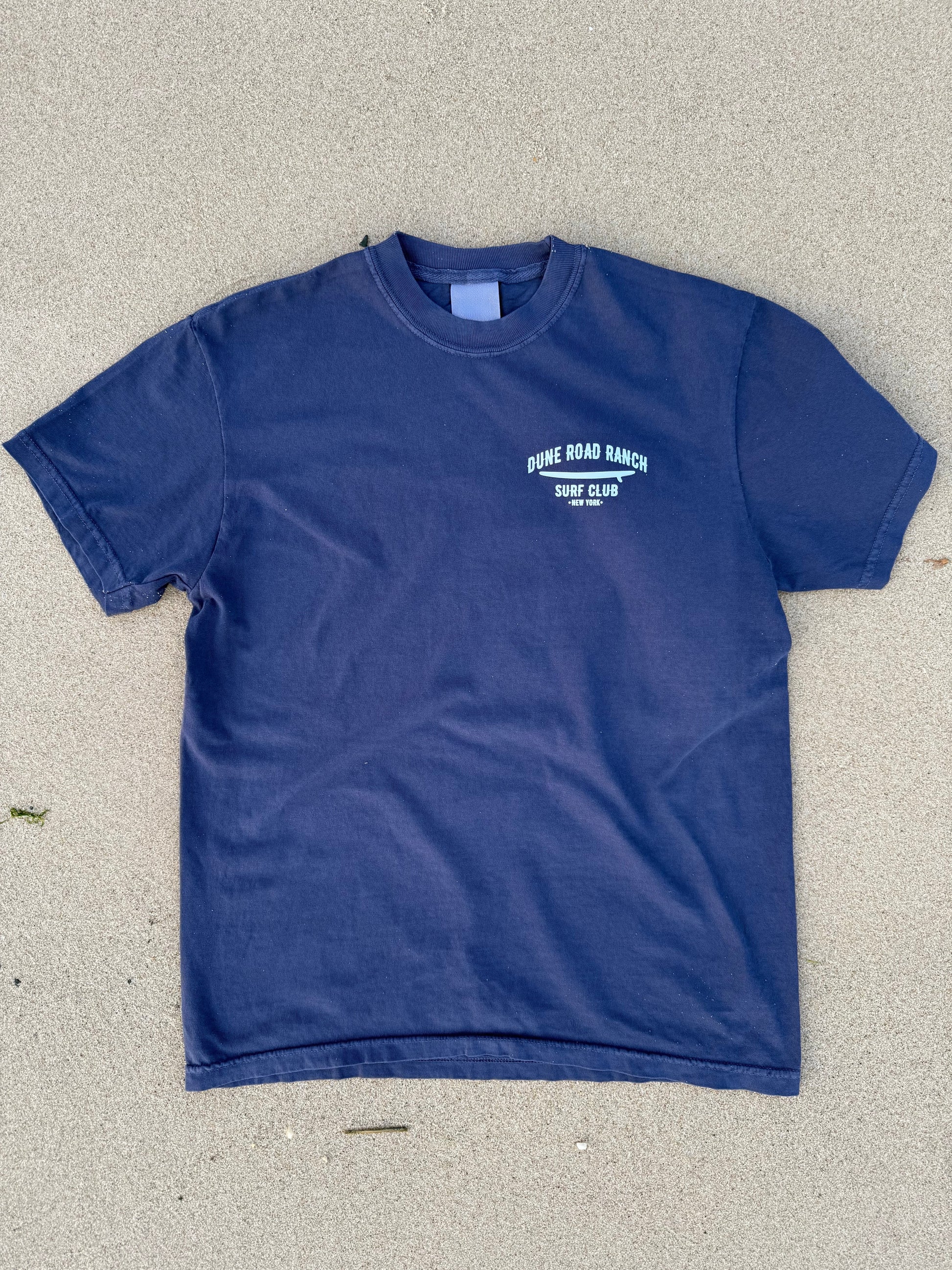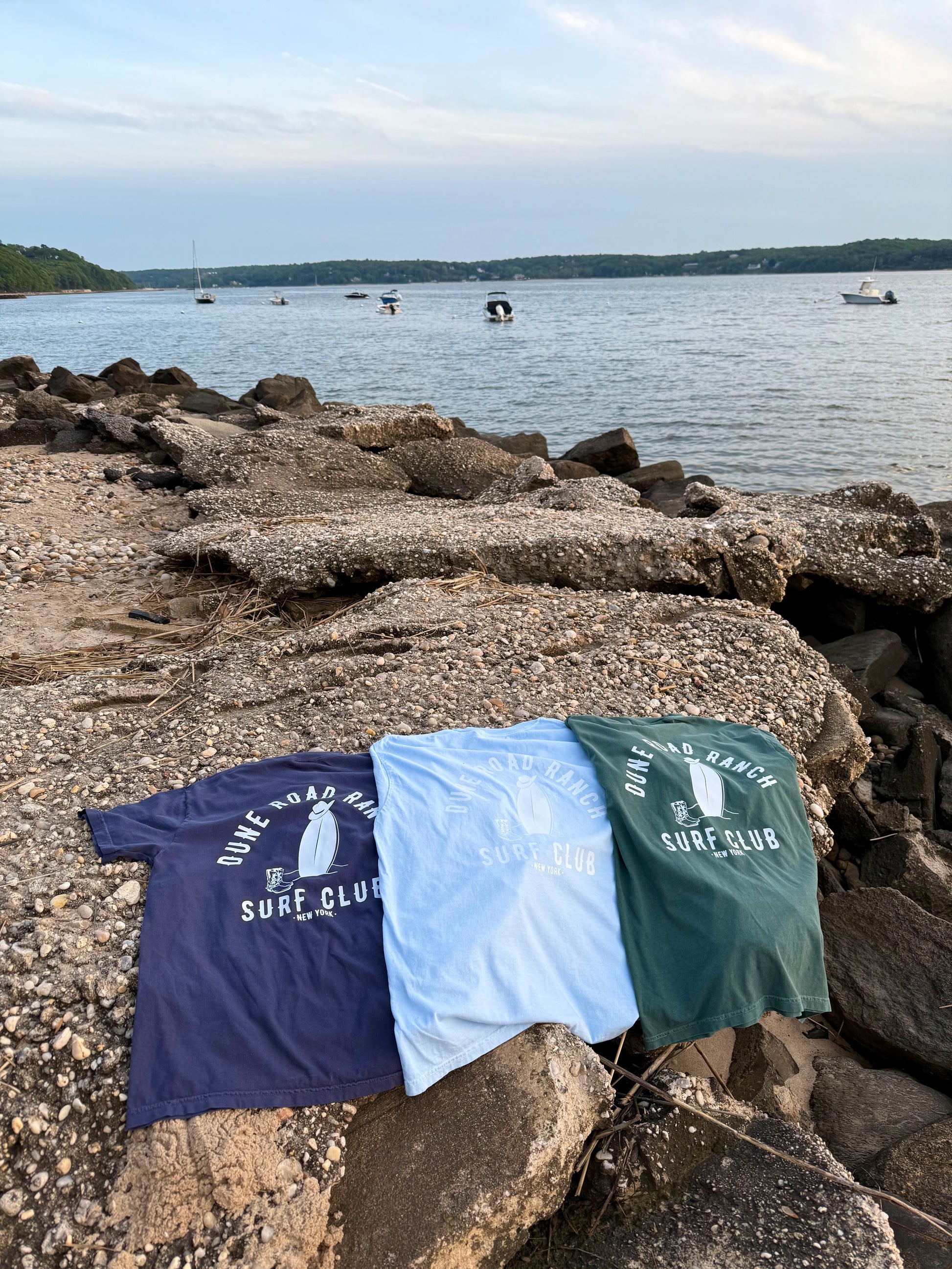 Our Surf Club Tee is a garment-dyed 6.4oz 100% cotton blend, giving a soft, worn in feel and look. Featuring 2 variations of our Surf Club logo printed on the front and back, this Tee was locally designed and produced on Long Island. This Tee is designed for unisex sizing and fits true to size. For best care, we recommend machine wash cold and hang dry.