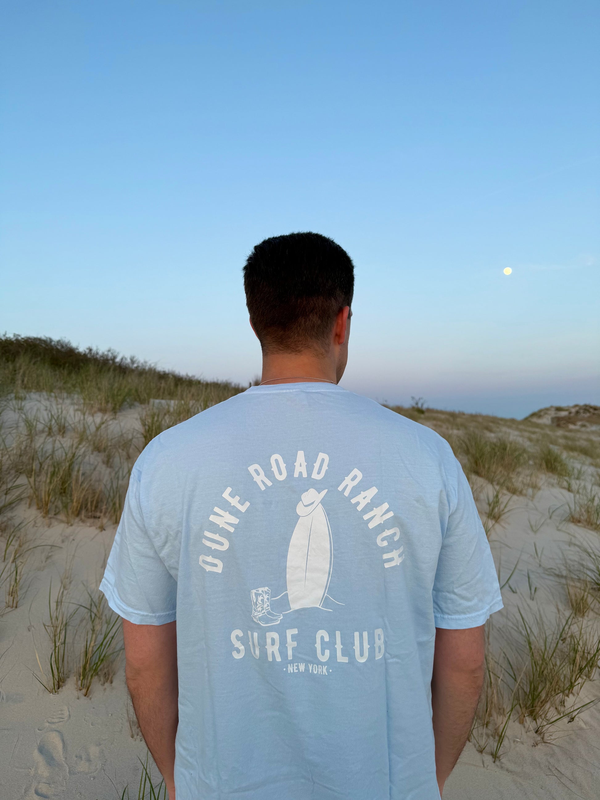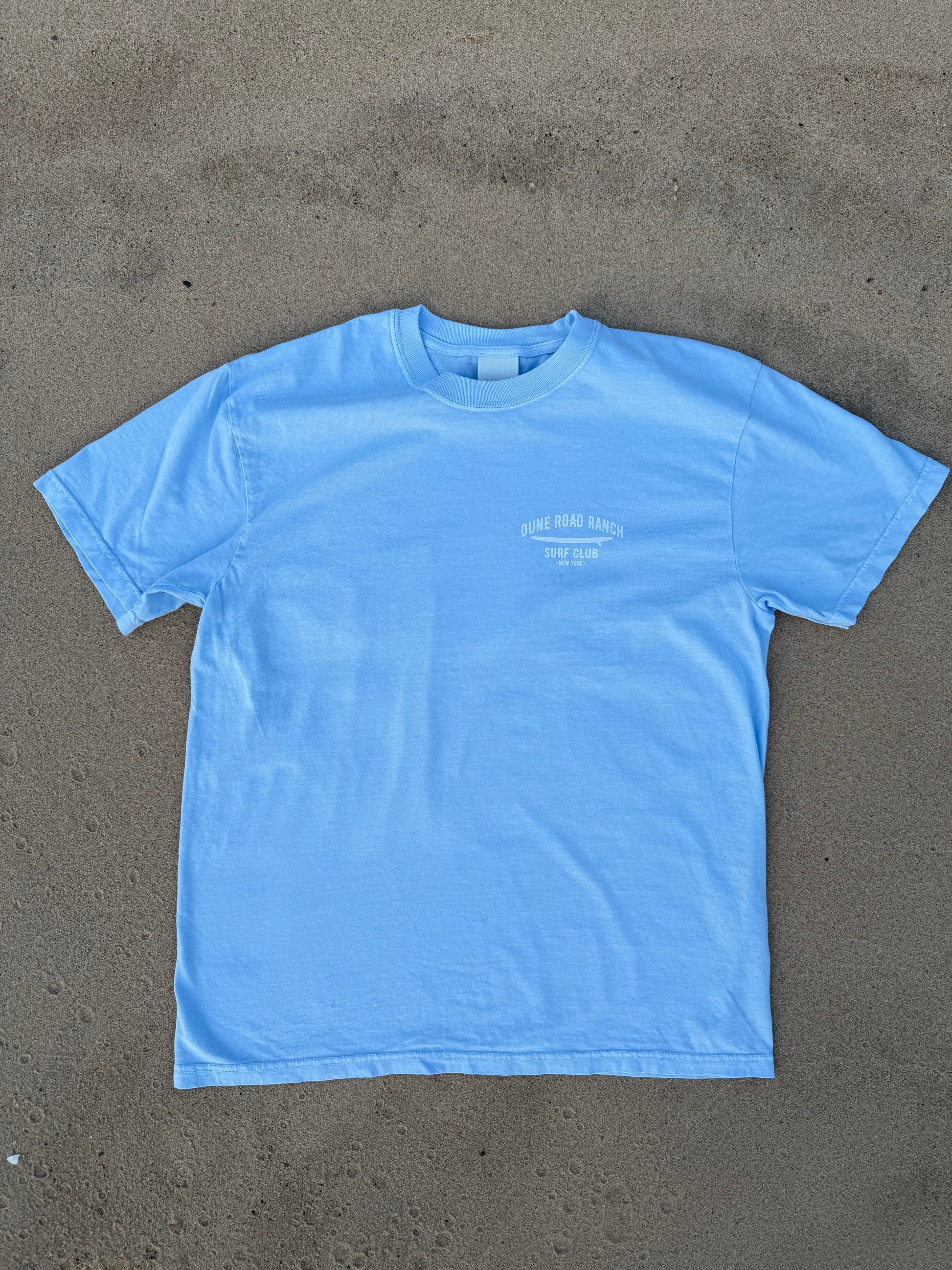 Our Surf Club Tee is a garment-dyed 6.4oz 100% cotton blend, giving a soft, worn in feel and look. Featuring 2 variations of our Surf Club logo printed on the front and back, this Tee was locally designed and produced on Long Island. This Tee is designed for unisex sizing and fits true to size. For best care, we recommend machine wash cold and hang dry.