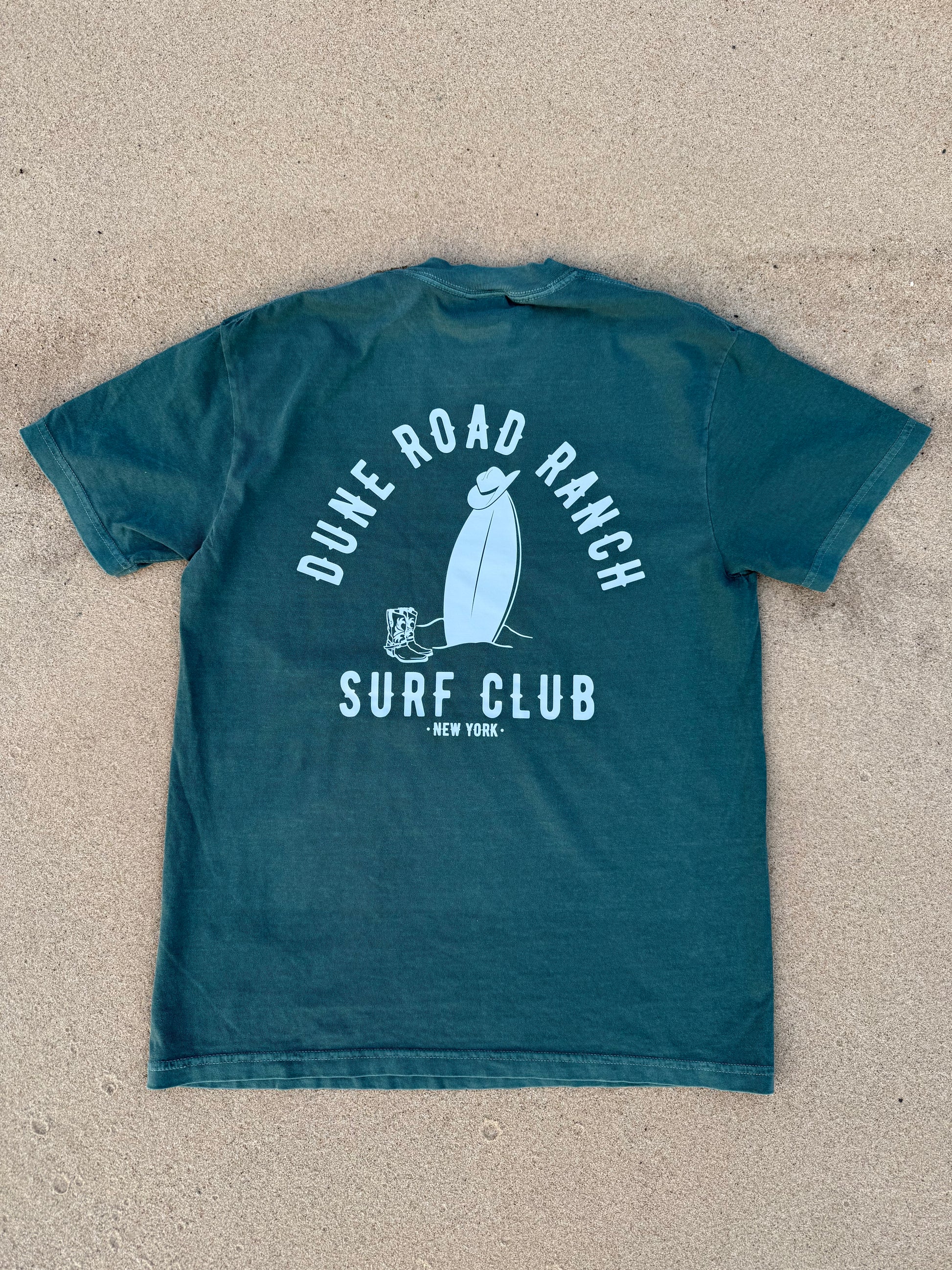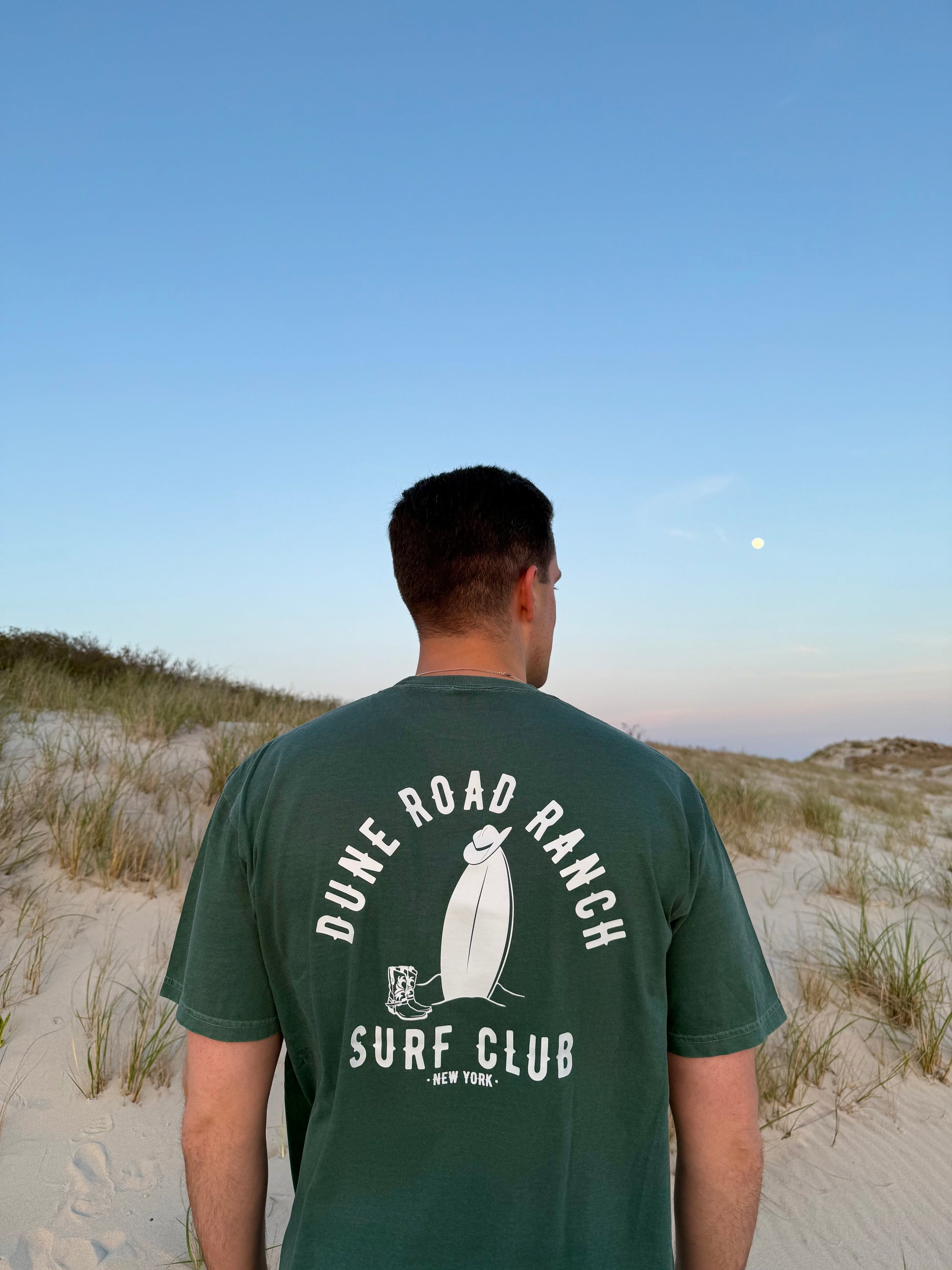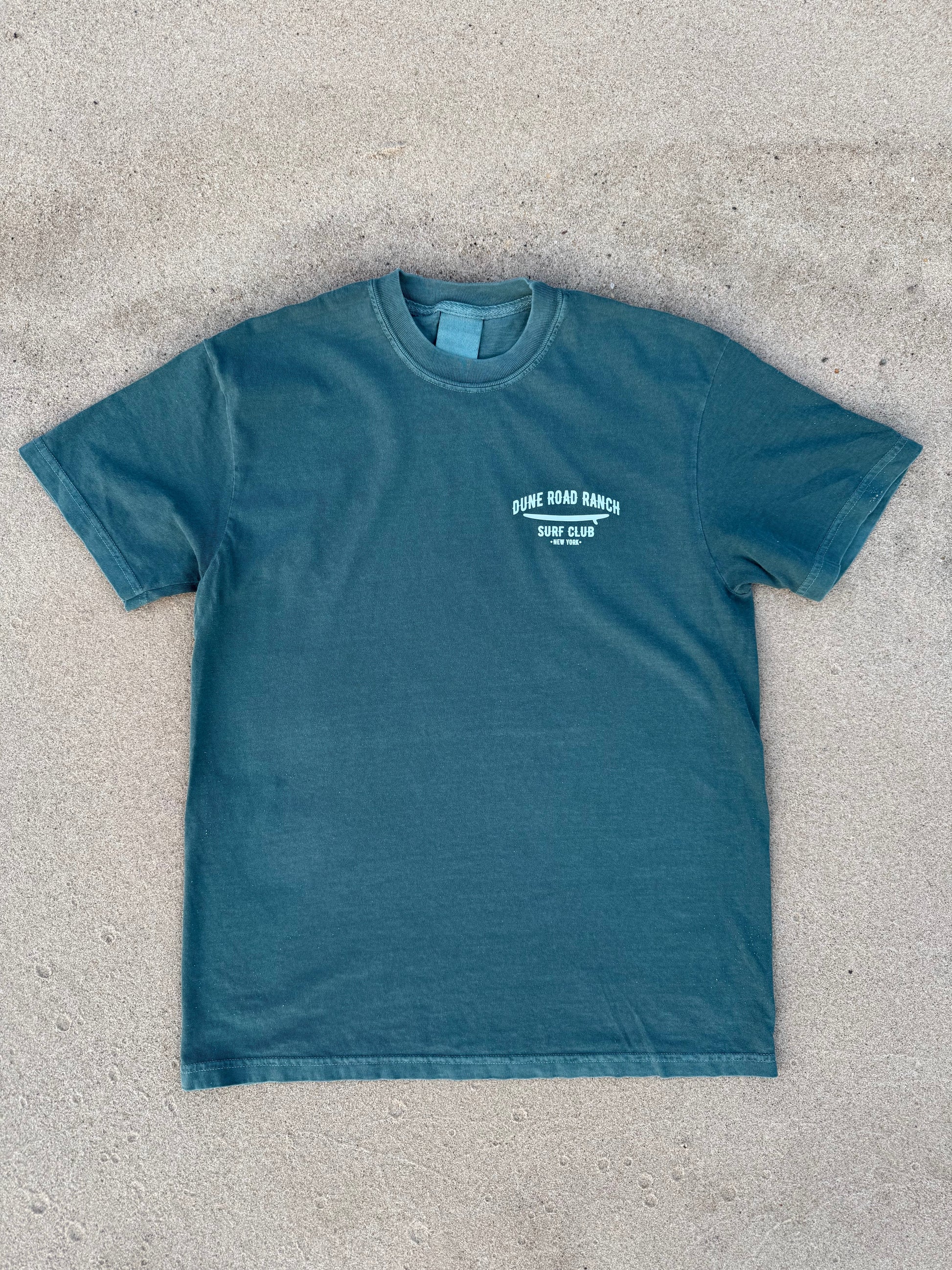 Our Surf Club Tee is a garment-dyed 6.4oz 100% cotton blend, giving a soft, worn in feel and look. Featuring 2 variations of our Surf Club logo printed on the front and back, this Tee was locally designed and produced on Long Island. This Tee is designed for unisex sizing and fits true to size. For best care, we recommend machine wash cold and hang dry.